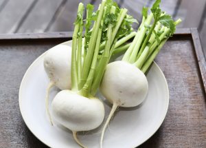 カブは、余分な塩分を排出して血圧を下げるカリウムや、消化吸収を助ける酵素の「ジアスターゼ」を多く含む。