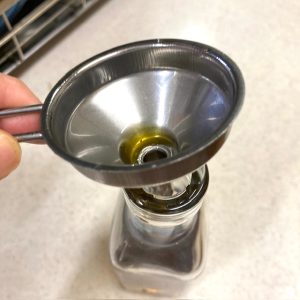 4)じょうごを使ってオイルボトルに移したら(写真)出来上がり。