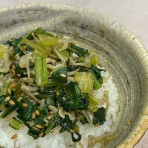 小さなお子さんにはご飯に混ぜた菜飯にして、おにぎりにすると食べやすくなりますよ。