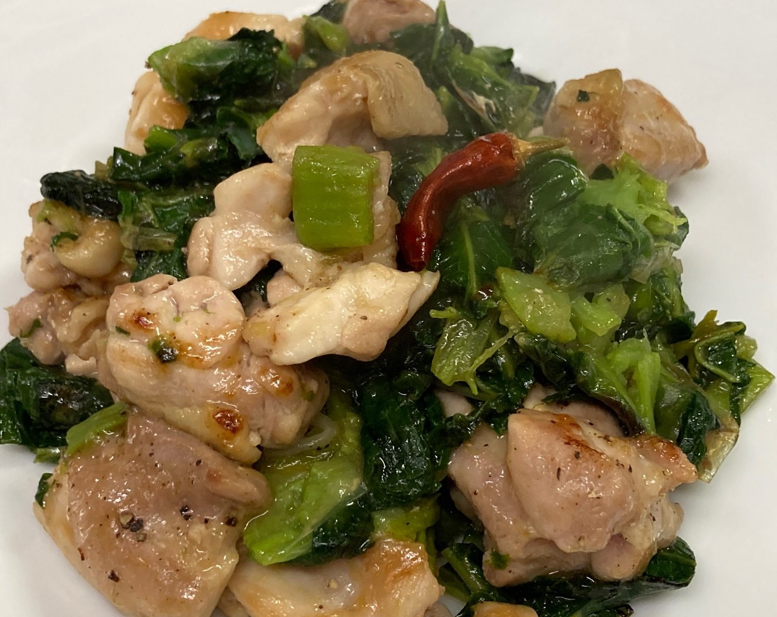 葉の下がシャキッとしている小松菜や青梗菜を使う料理をイメージすると